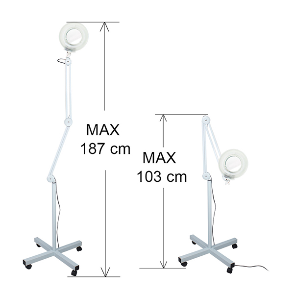The Round Magnifying Lamp with Stand 101B is a versatile tool perfect for detailed facial treatments and professional skincare services. This round LED magnifying lamp features a crystal-clear magnifier lens and bright LED lighting to ensure precise visibility. Designed as a salon magnifier lamp on wheels, it moves effortlessly around treatment areas. Ideal for estheticians and dermatologists, this professional magnifying lamp boosts accuracy during facials, extractions, and more, with its portable beauty lamp with magnifier design offering flexibility in any setup.